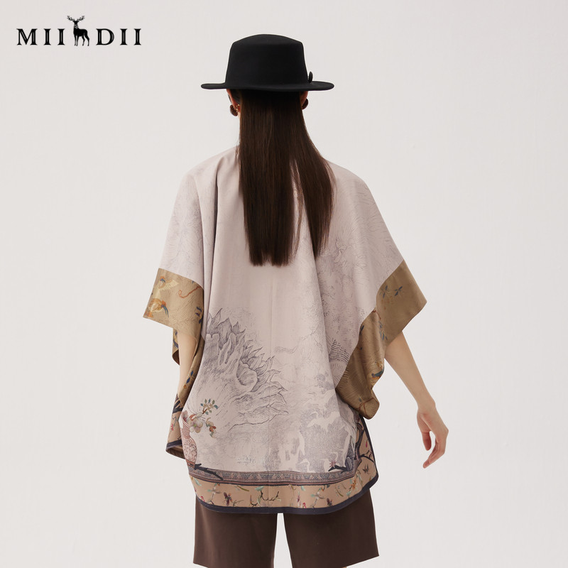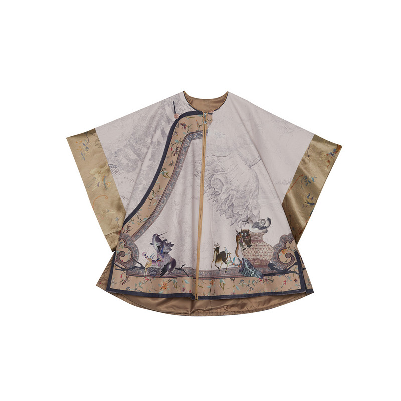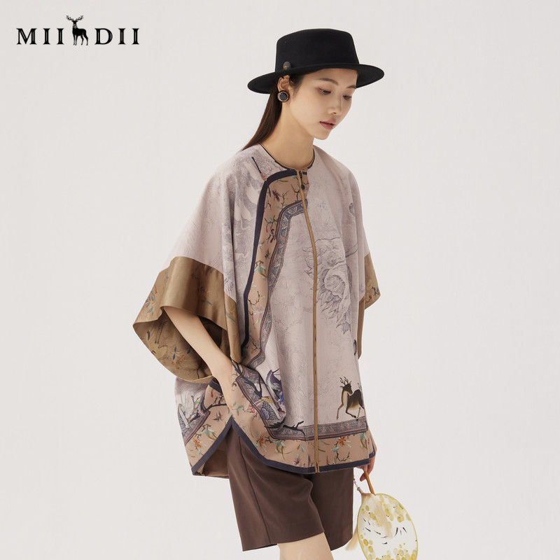 谜底斗篷式 大廓形印花外套243ME1208 风衣女士秋老钱风新中式