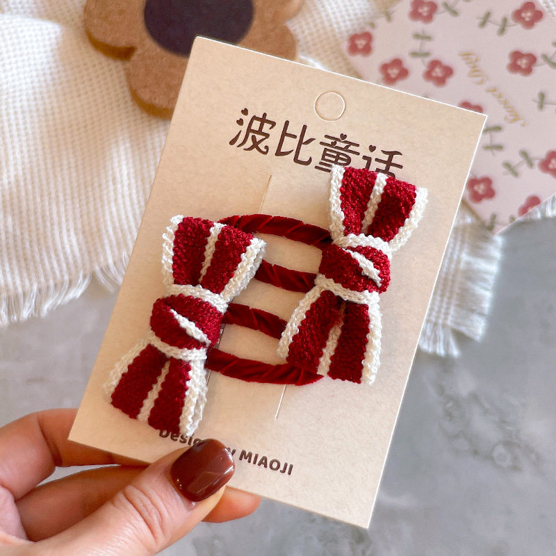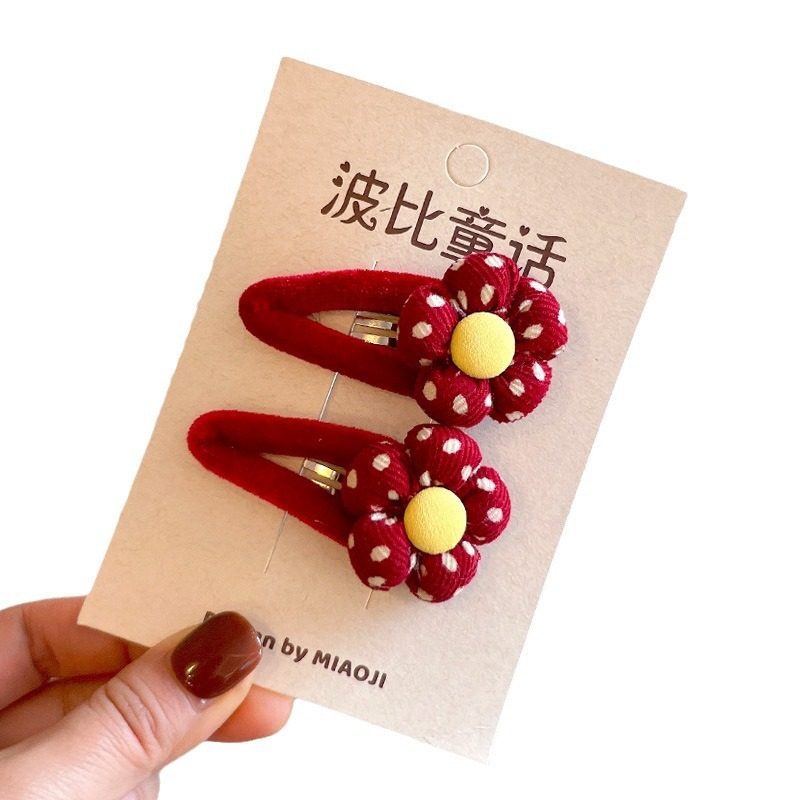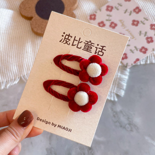 韩版 酒红花朵儿童发夹刘海夹可爱宝宝蝴蝶结BB夹 女童新年头饰