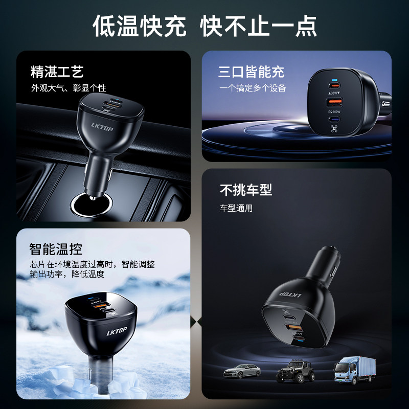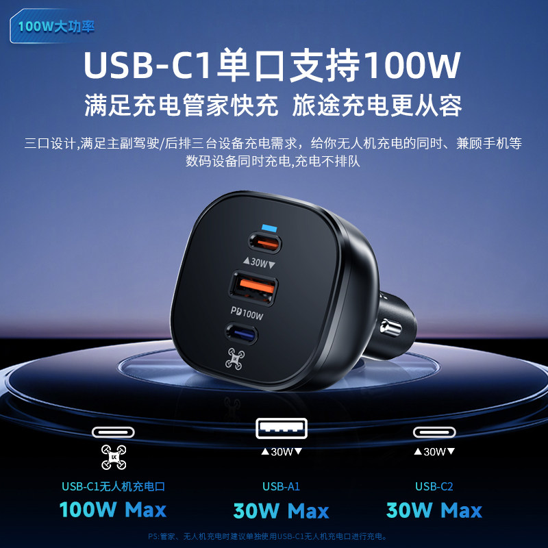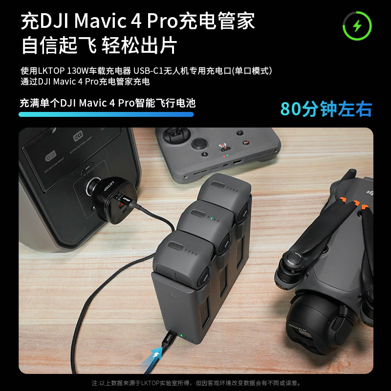 御3系列 Air3S 御4Pro Flip车充配件无人机车载快充头 Mini5pro LKTOP无人机车载充电器130w适用大疆Neo