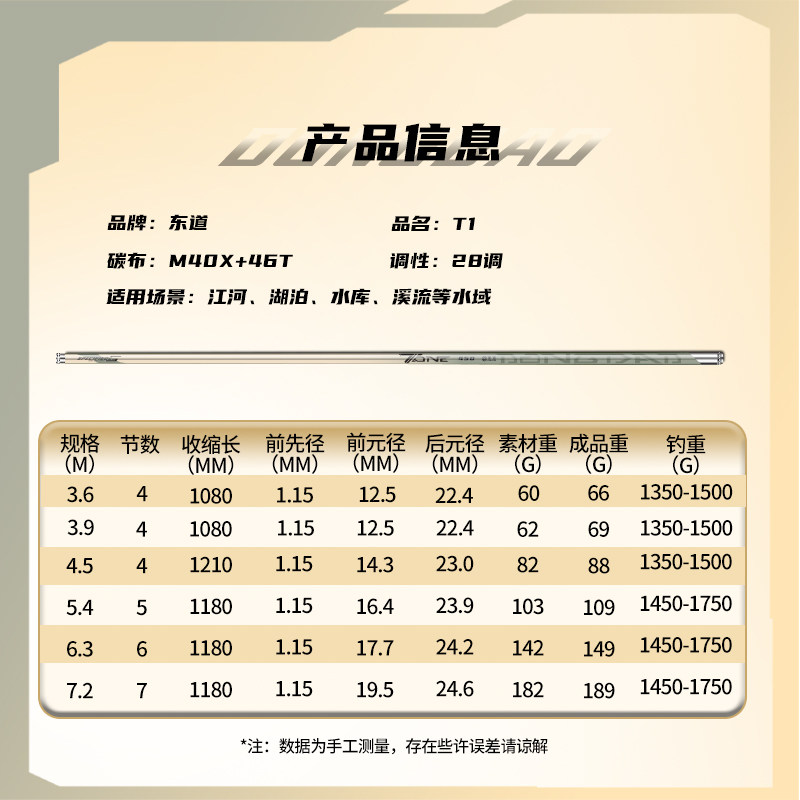 东道T 1轻量化小综合M40X碳素台钓黑坑野钓鲫鲤休闲竿28调4H