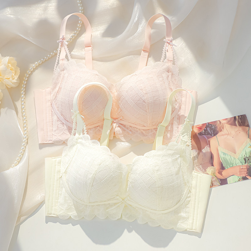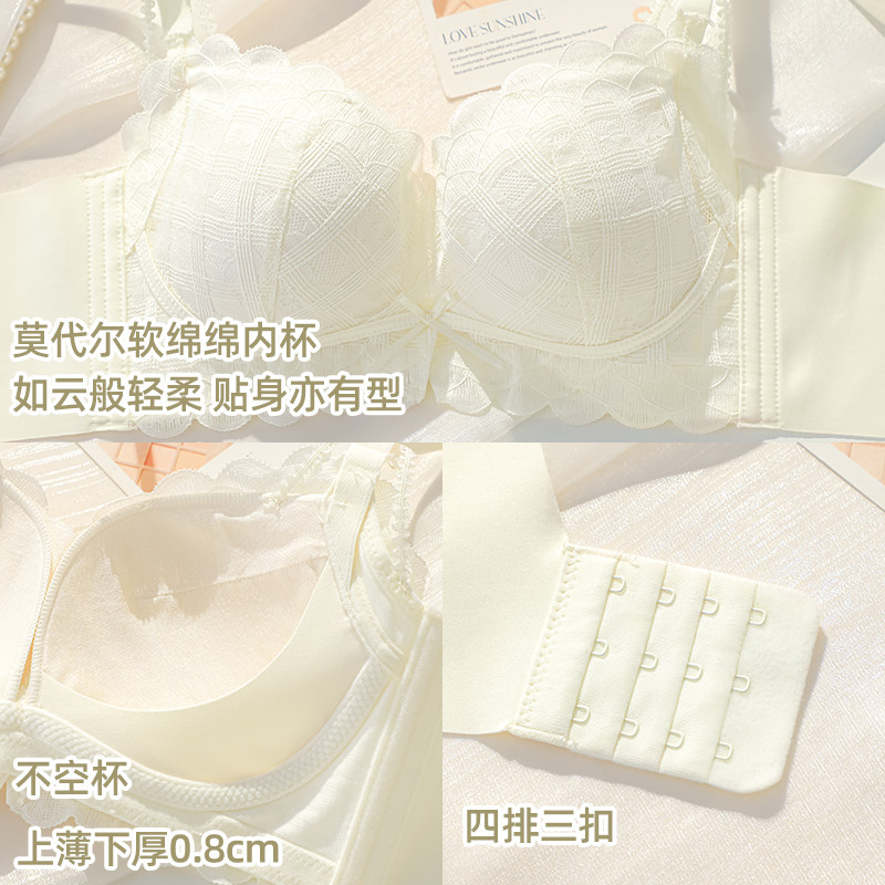 蕾丝小胸聚拢文胸无钢圈内衣女2024新款 收副乳防下垂胸罩纯欲套装