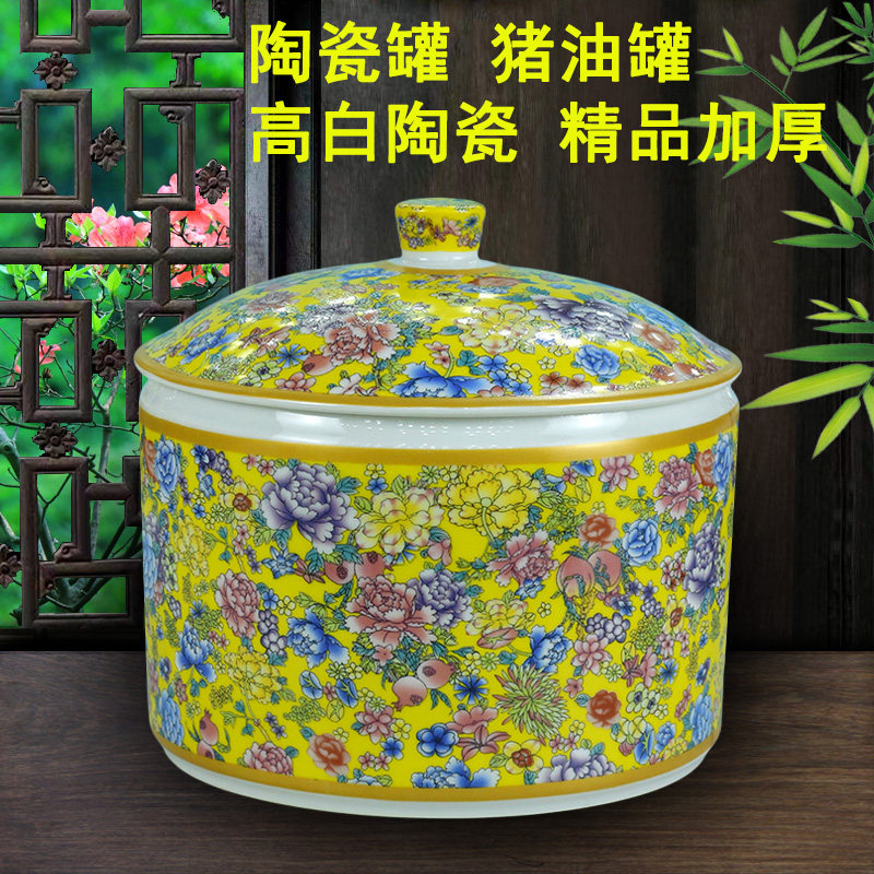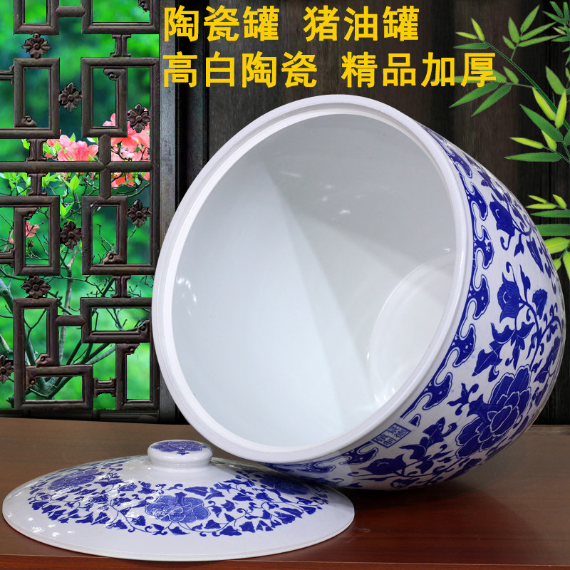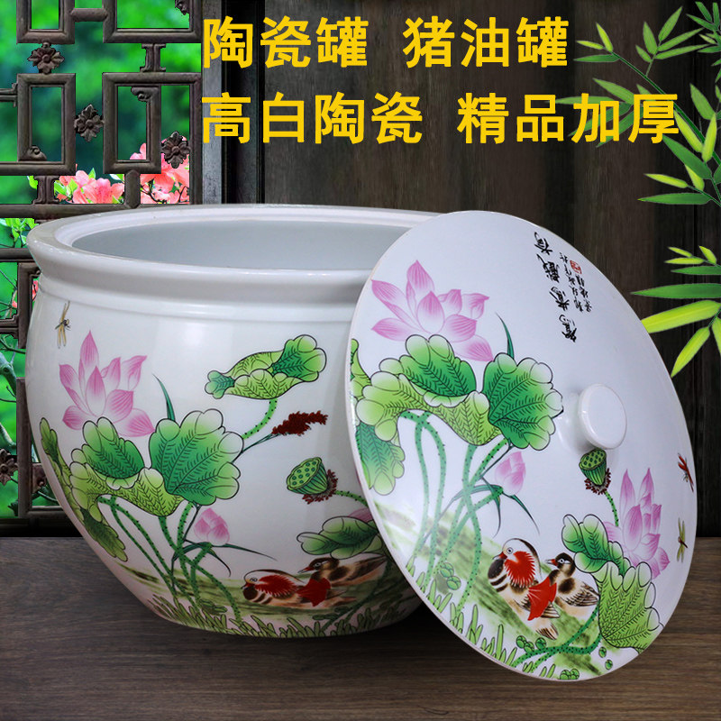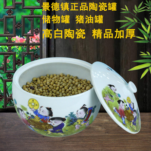 陶瓷米缸带盖装 米桶米箱茶饼罐陶瓷带盖家用景德镇猪油缸水缸摆件