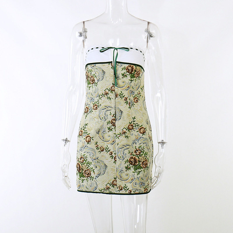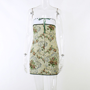 Women Dress Off Floral Metal Vacation shoulder Butto Printed