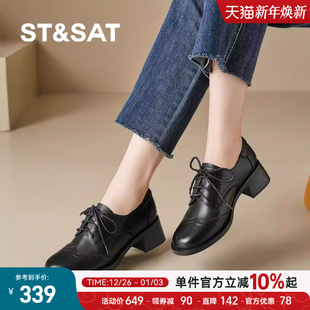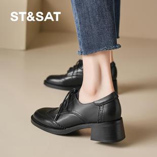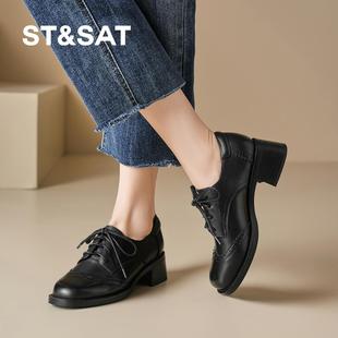 星期六粗跟乐福鞋 单鞋 女25新款 女鞋 夏增高软底通勤小皮鞋 St&Sat