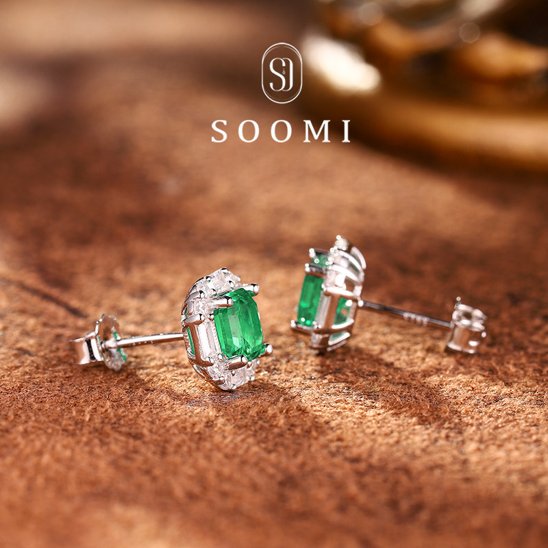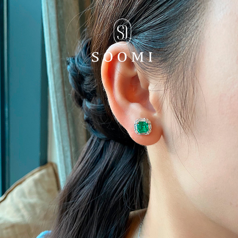 925银针秋冬酒红色植绒方形镶钻耳钉轻奢高级感耳环气质新年耳饰