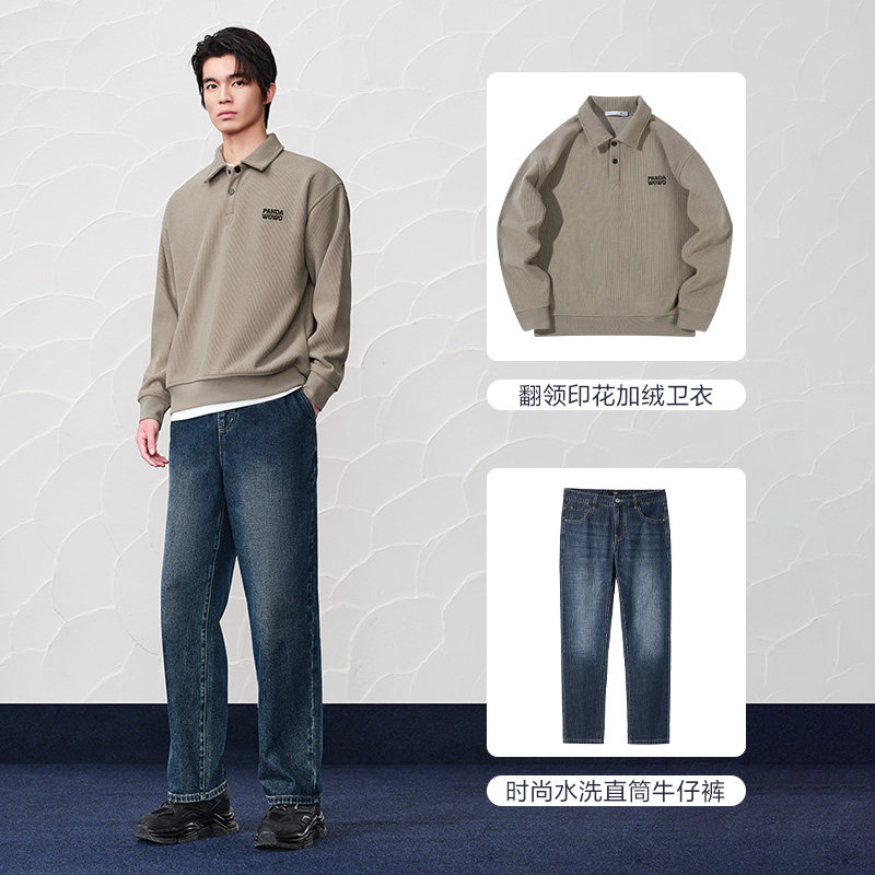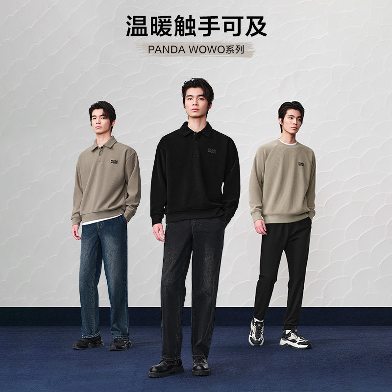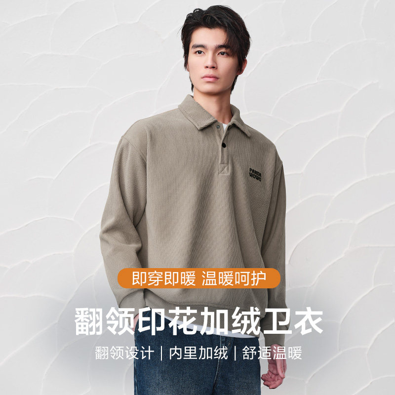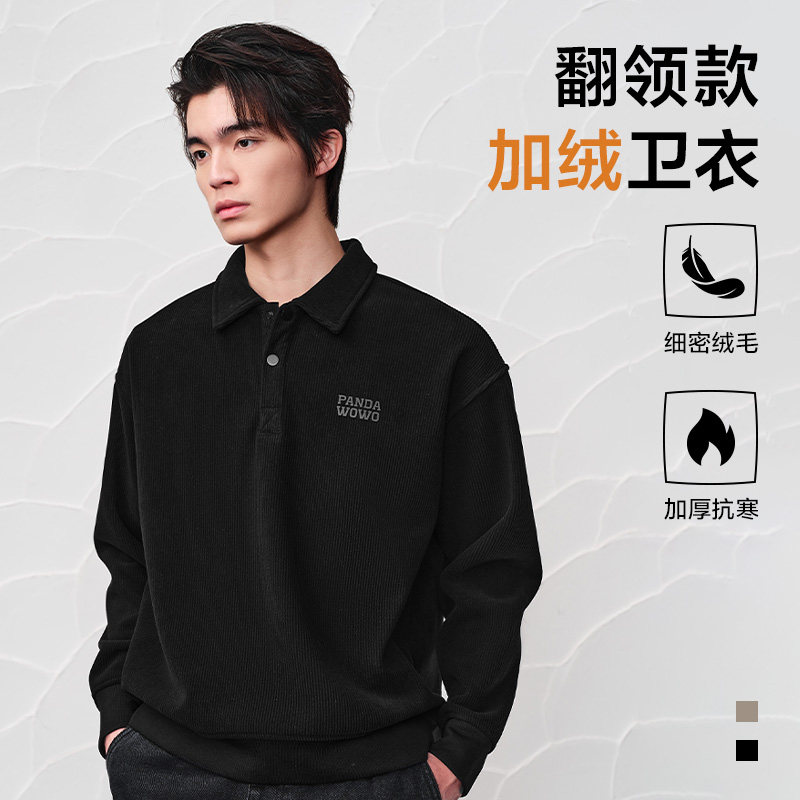 wowo秋冬新宽松衬衫 海澜之家panda HLA 领厚卫衣男装 翻领加绒