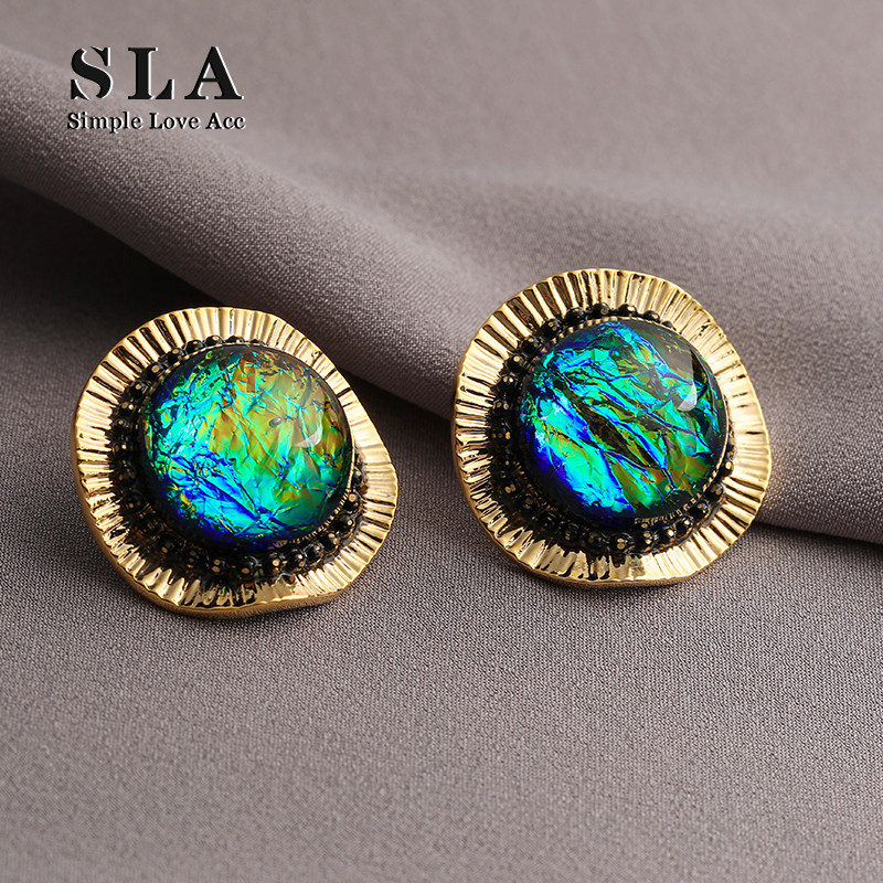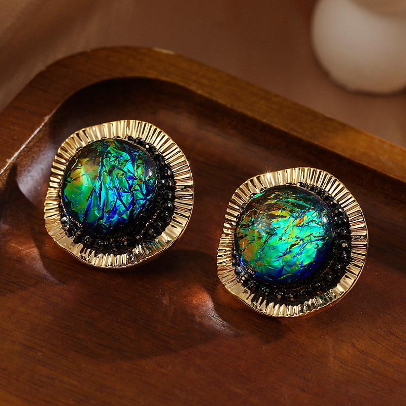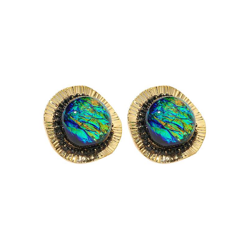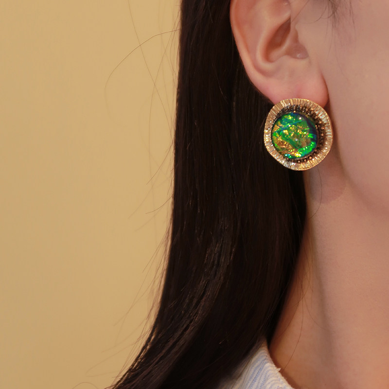 复古高级感立体几何琉璃扇形边框银针耳环女 Acc私家 Simple Love