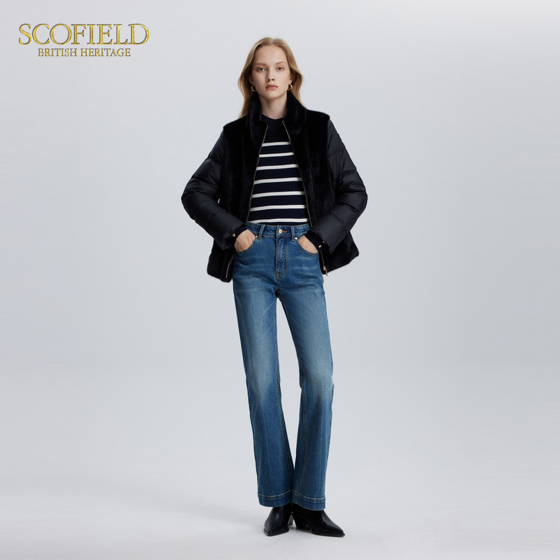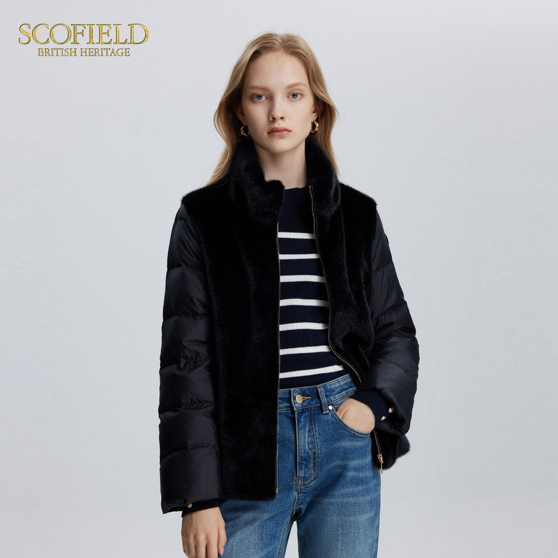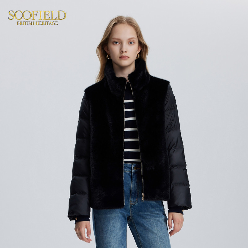 Scofield女毛绒拼接马甲羽绒服发热内里冬季 90%鹅绒