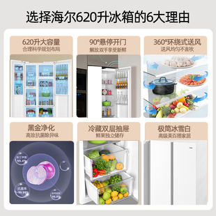 海尔冰箱620升双开门家用大容量对开门风冷无霜一级能效变频旗舰