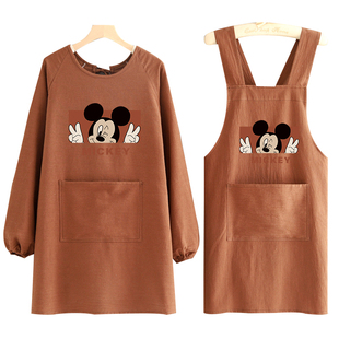 可爱卡通防污耐脏罩衣女新款 围裙厨房家用做饭护衣 工作服条绒长袖