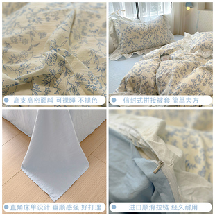 韩式 床笠被套床裙学生宿舍床上三件套全棉 花边床单四件套纯棉四季