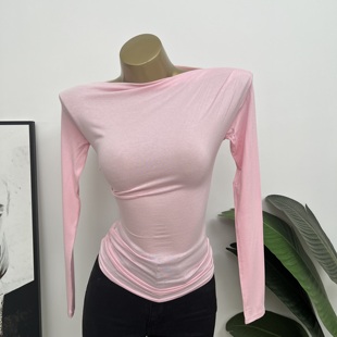 ins t恤内搭打底衫 初秋bi入 韩国女人味斜边一字领露肩显身材长袖