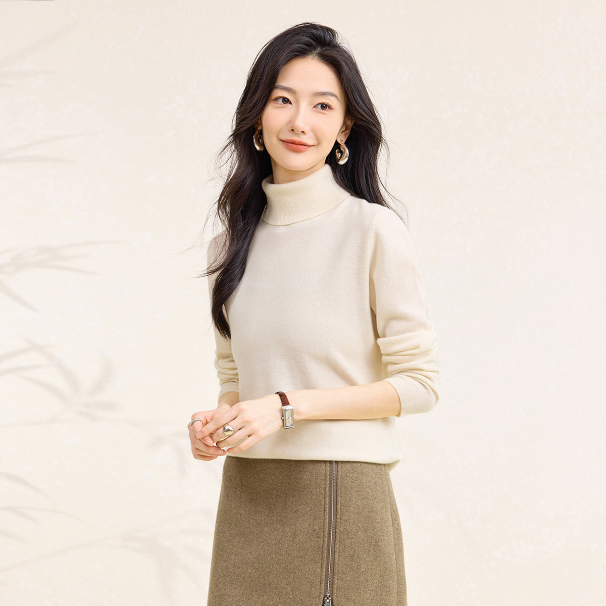保暖毛衣女打底羊毛衫 100%绵羊毛高领洋气减龄厚款 新款 春竹26春季