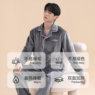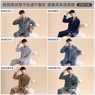 珊瑚绒家居服套装 三层夹棉睡衣男冬季 加厚加绒保暖中老年爸爸冬款