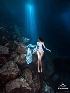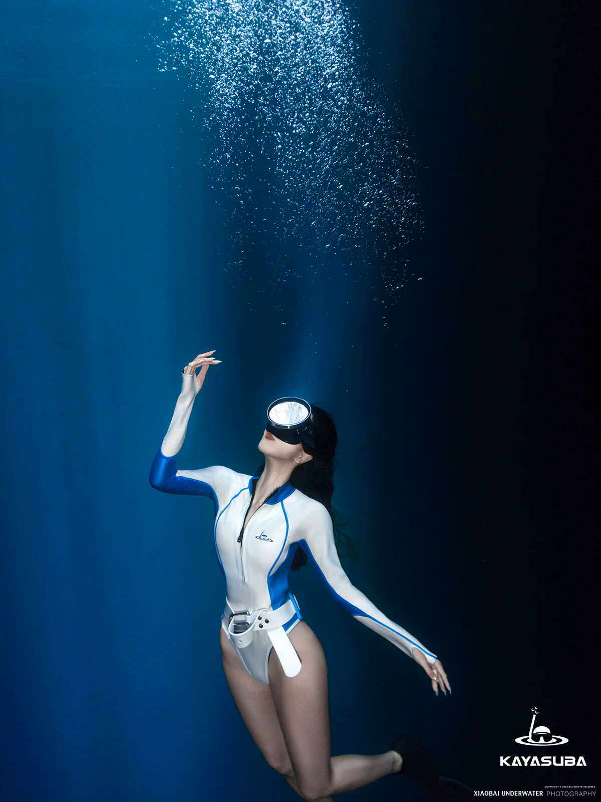 KAYASUBA 白蓝无暇系列潜水服女连体浮潜泳衣显瘦防晒水母衣泳衣