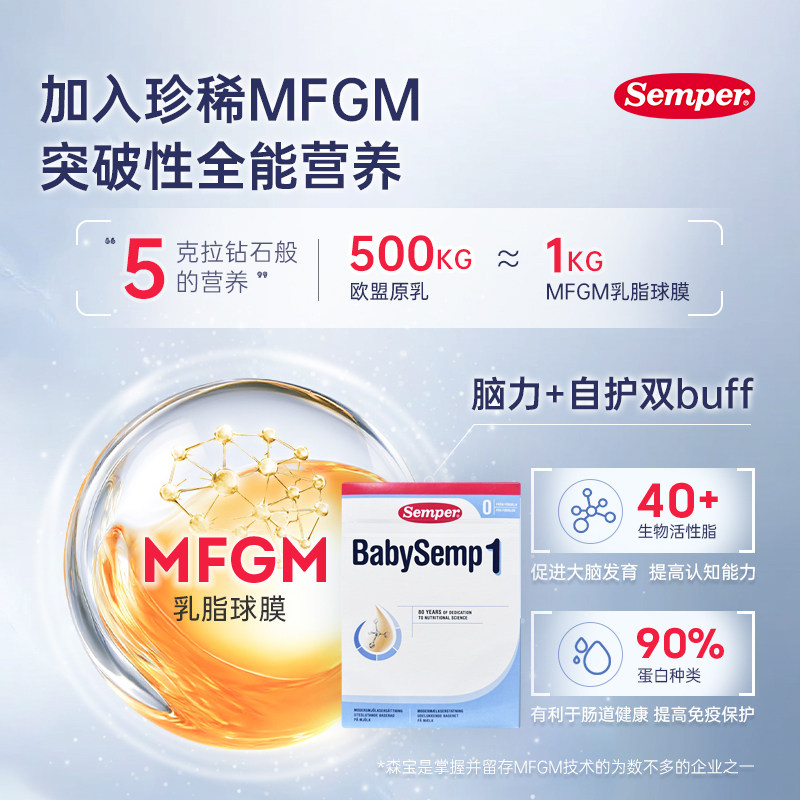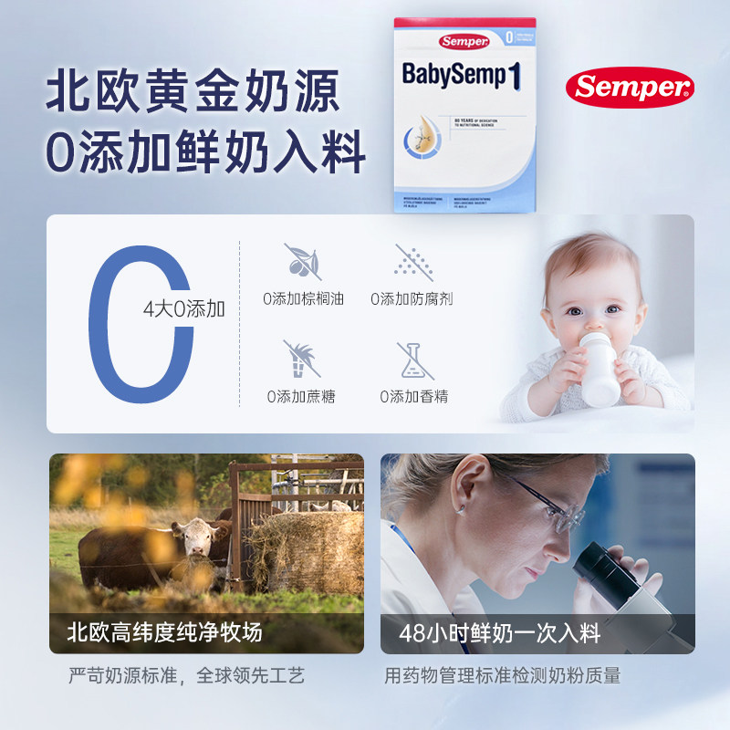 3盒效期 DHA婴幼儿奶粉 semper森宝奶粉1段瑞典MFGM 27.2 自营