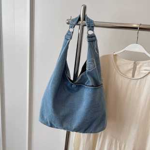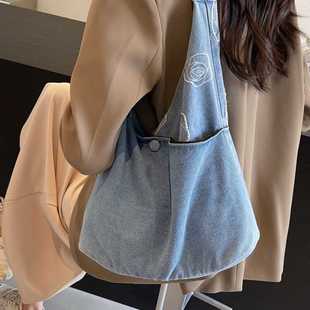 牛仔布单肩包女2024新款 森系托特包简约百搭休闲腋下包补习袋 时尚