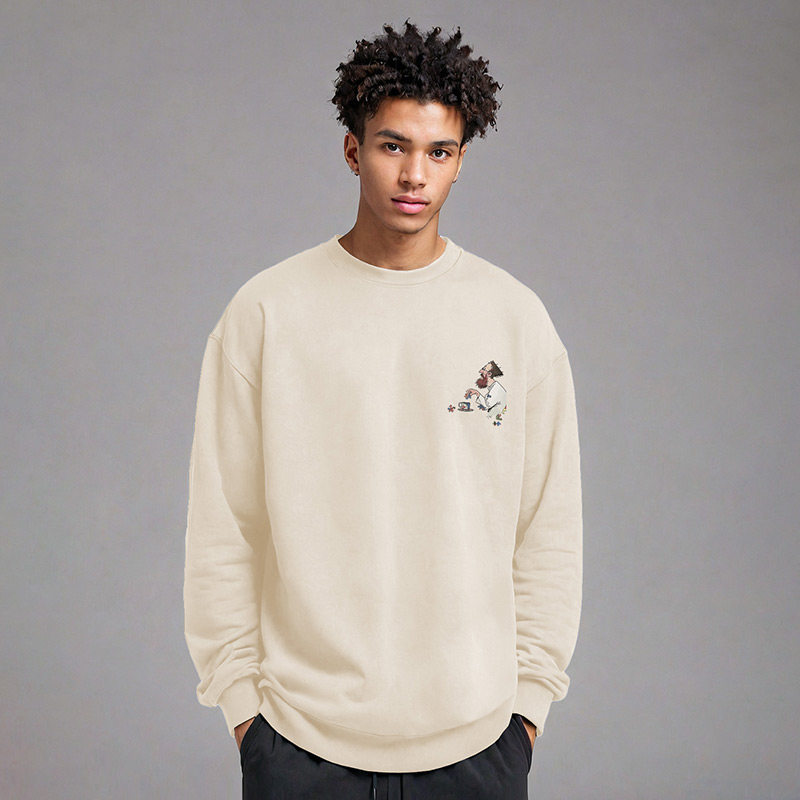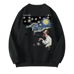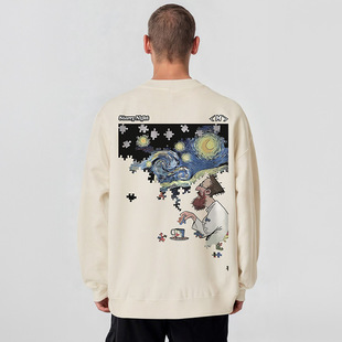 潮流宽松水洗做旧圆领卫衣无帽秋 重磅复古胖子男装 加肥加大码 美式