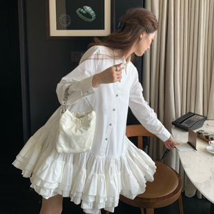 连衣裙白色蓬蓬短裙 衬衫 SourceWithU伊丽莎白 纯棉重工大裙摆法式