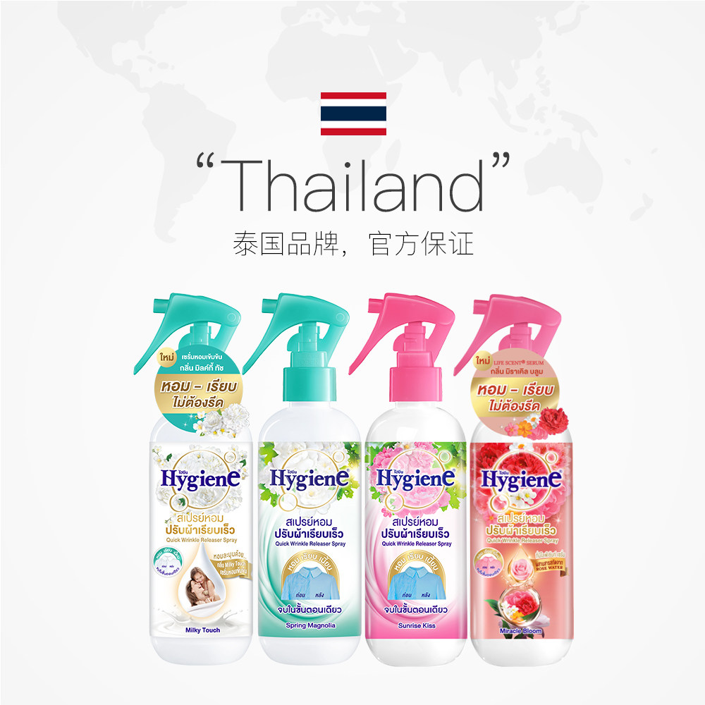 泰国Hygiene织物祛皱柔顺喷雾 便携清洁香氛除味柔顺护理剂220ml