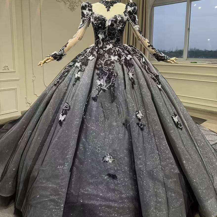 礼服女 重工轻婚纱轻奢影楼宫廷带泡泡袖 法式 出门缎面复古2025新款
