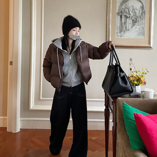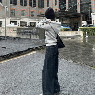 秋冬加绒韩系小个子修身 灰色外套女款 上衣 卫衣开衫 超好看连帽短款