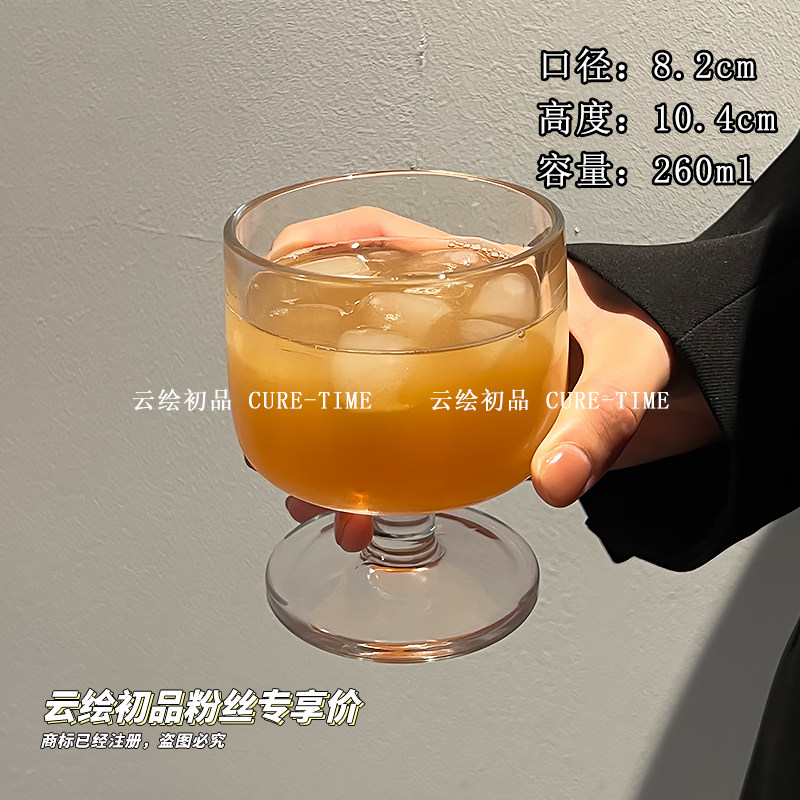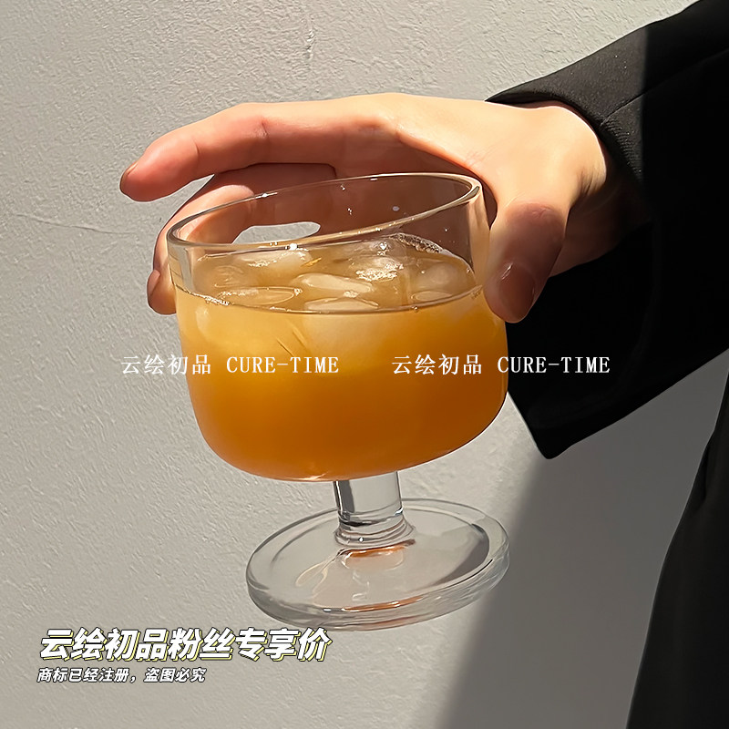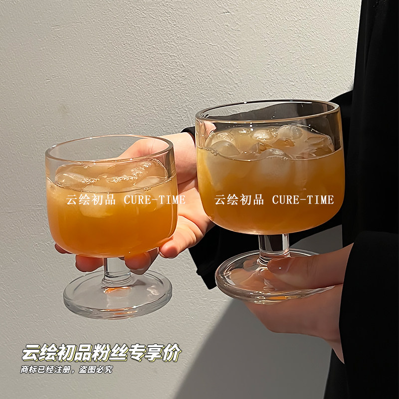 法式 玻璃高脚杯家用高颜值冷饮果茶气泡水鸡尾酒特调杯加厚饮品杯