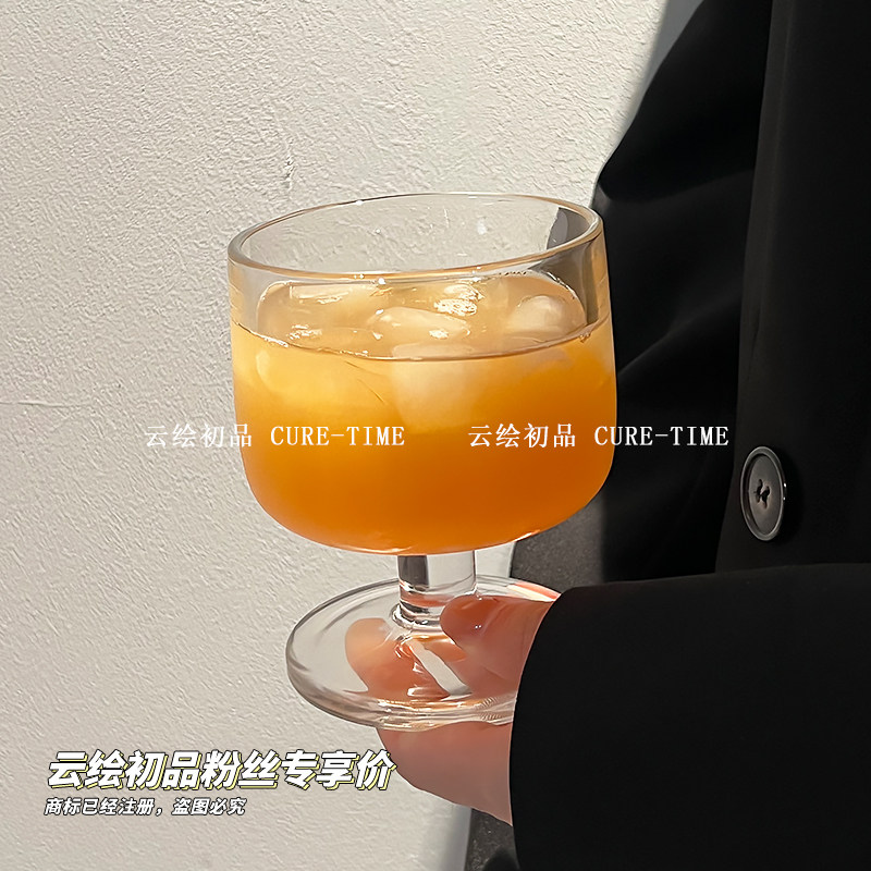 ins风玻璃高脚杯 高颜值果茶杯苏打气泡水杯果汁冷饮品杯鸡尾酒杯