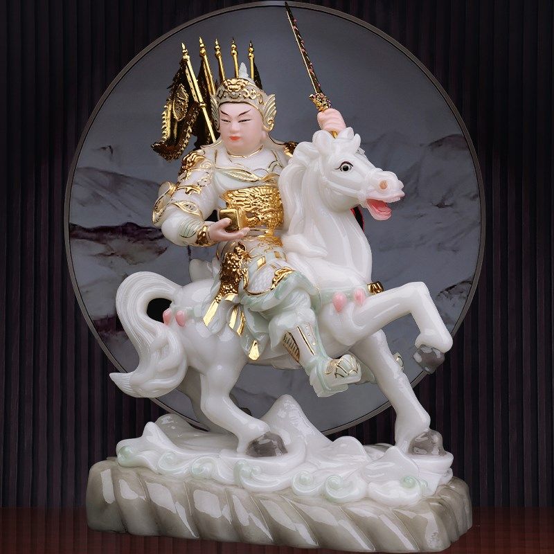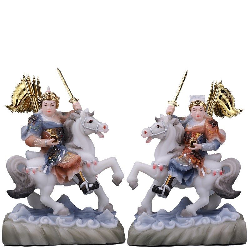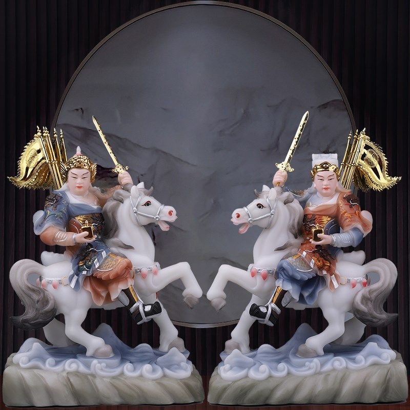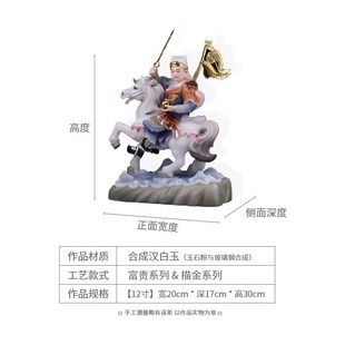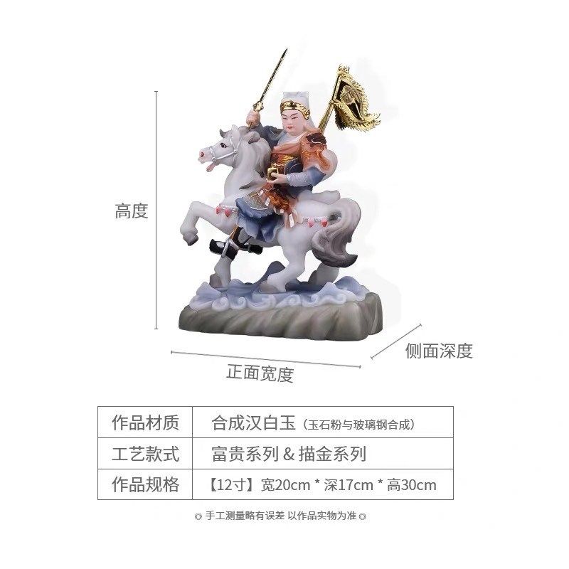 汉白玉骑马将军报马将军黄小跑黄小报左右对马小童像家用堂口摆件