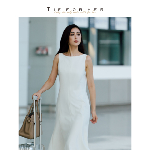 TieForHer 立裁显瘦优雅通勤礼服白色连衣裙 Marie人鱼裙法式