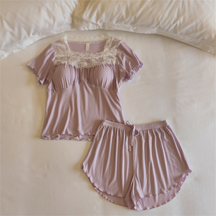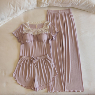 开衫 都市丽人纯棉睡衣女春秋款 2025新款 套装 甜美家居服 带胸垫长袖