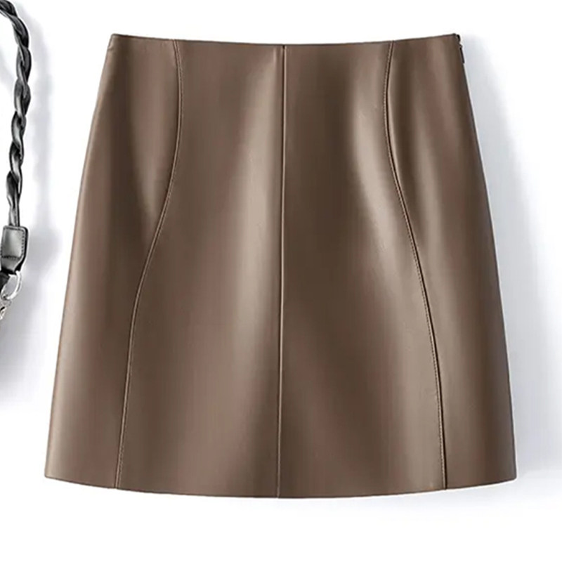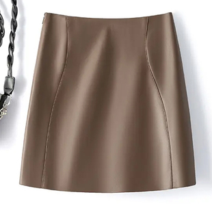 百搭棕色遮胯a字半身裙女秋冬麂皮短裙大码 防走光高腰显瘦包臀裙