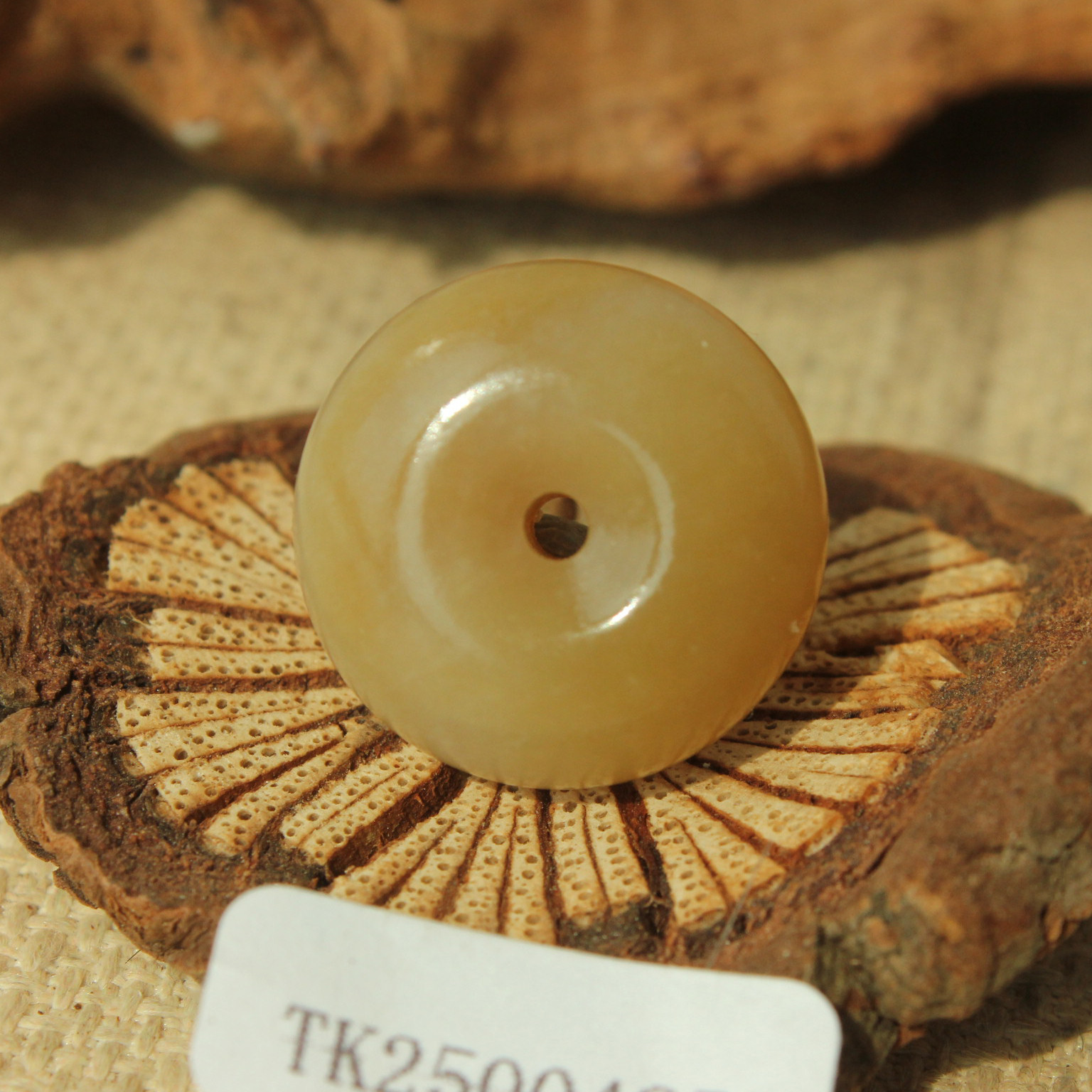 王实斋珠宝 新疆和田玉糖白玉18mm平安扣挂件吊坠油润度好小F723