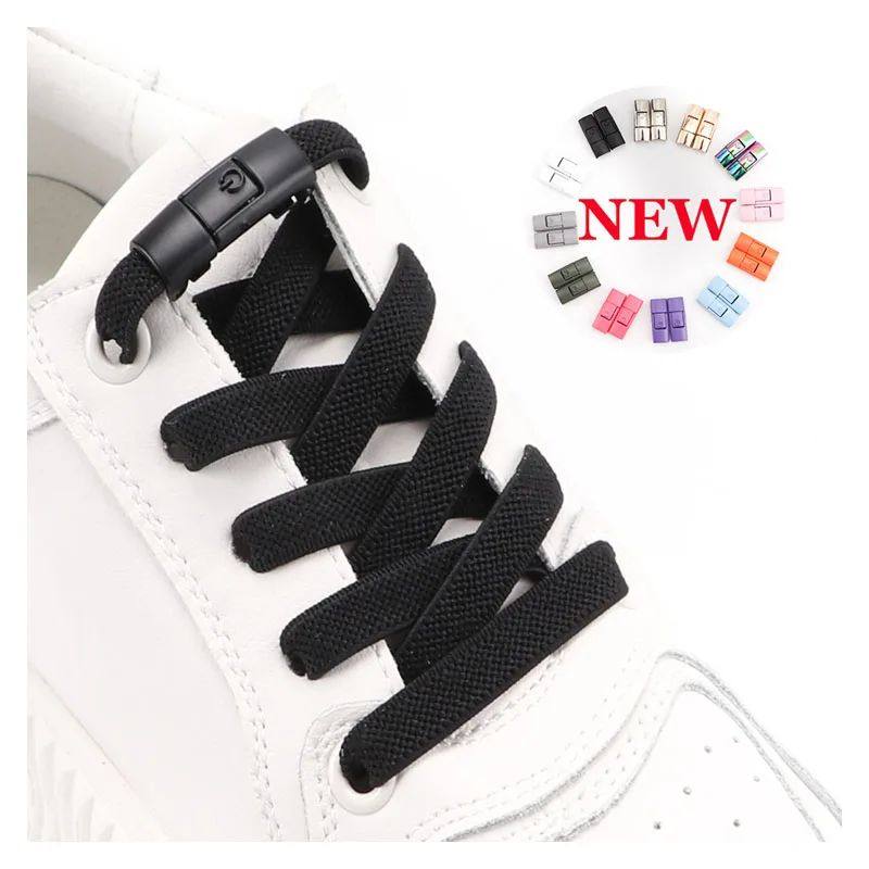 扣男女儿童运动 带黑白懒人免系免绑旋转鞋 旋钮鞋 带第四代扁平粗鞋