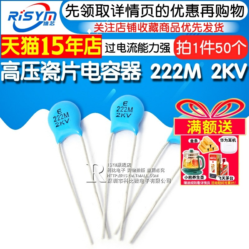 2KV 222 50个 高压瓷片电容器 2000V 222M 2.2nF Risym 2200PF