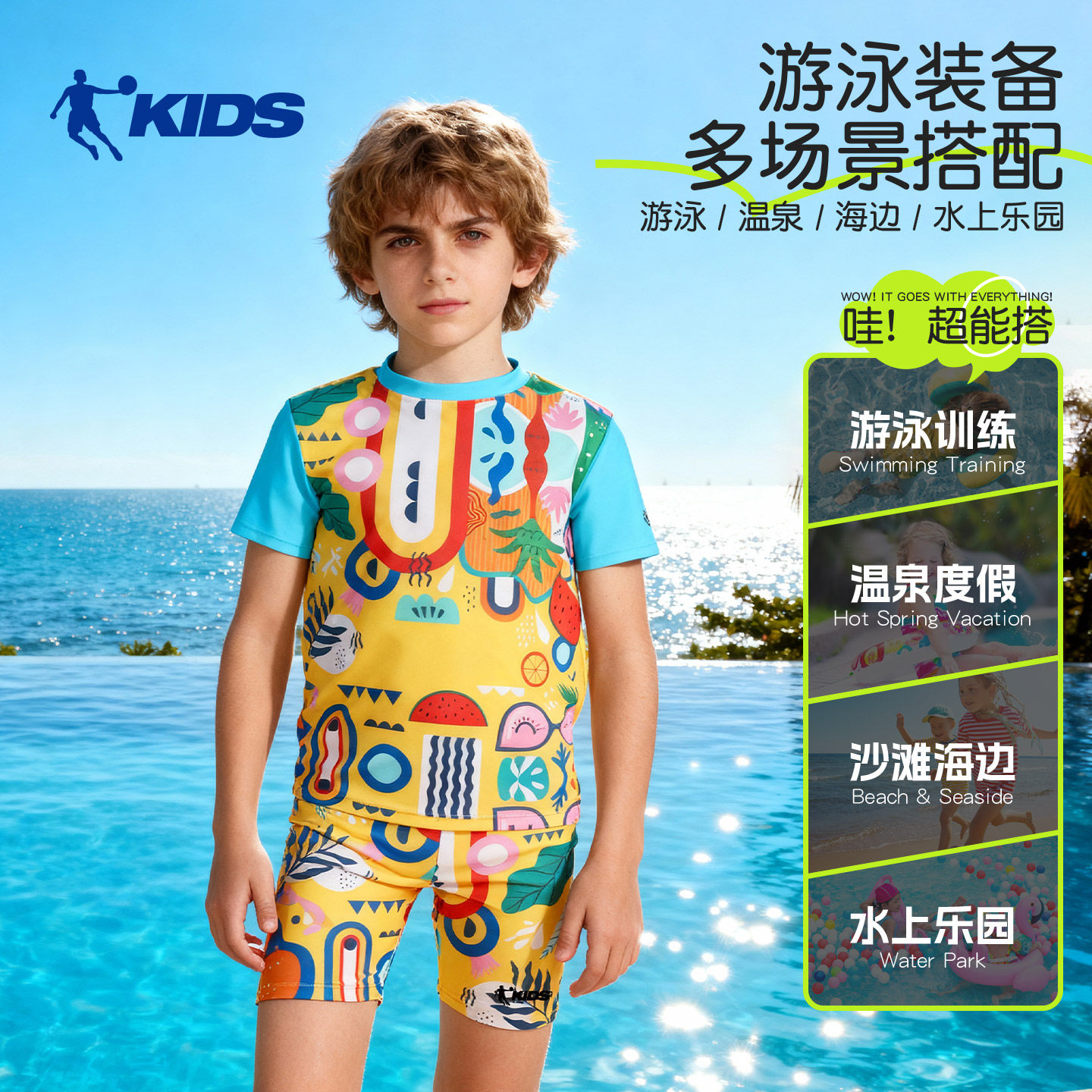 乔丹儿童泳衣男童分体2025新款 男孩游泳衣中大童防晒速干游泳套装