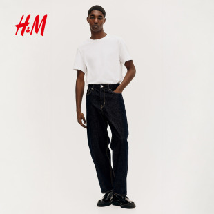 宽松潮流棉质中腰直筒外出长裤 HM男装 原色时尚 春季 1096385 牛仔裤