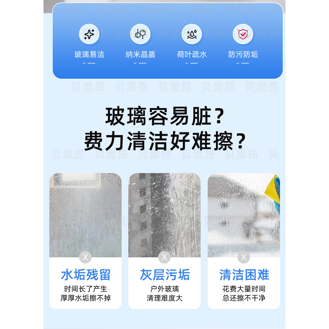 玻璃纳米镀晶剂浴室镜淋浴房陶瓷马桶防水垢疏水易洁纳米晶盾镀膜
