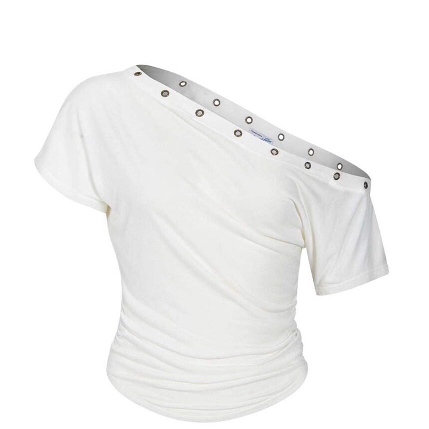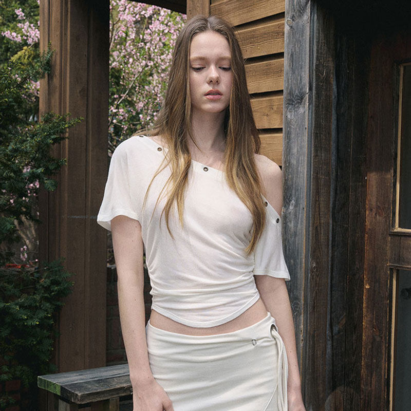 裤 aespa T恤女工装 PLEASENOFOLLOW不对称露肩孔眼短袖 winter同款