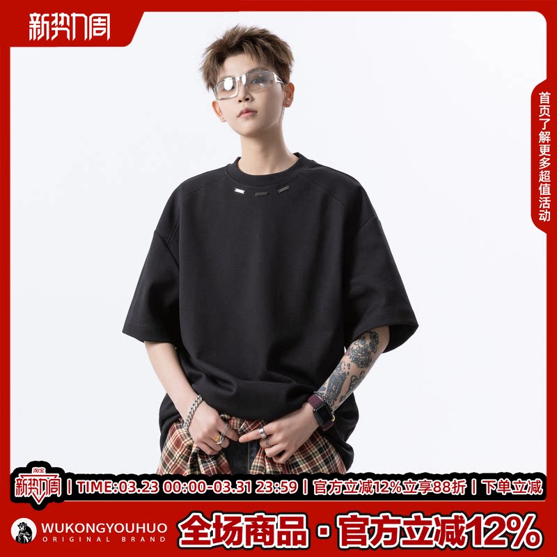 宽松百搭体恤 T恤男女潮牌夏季 悟空有货美式 cleanfit重磅圆领短袖