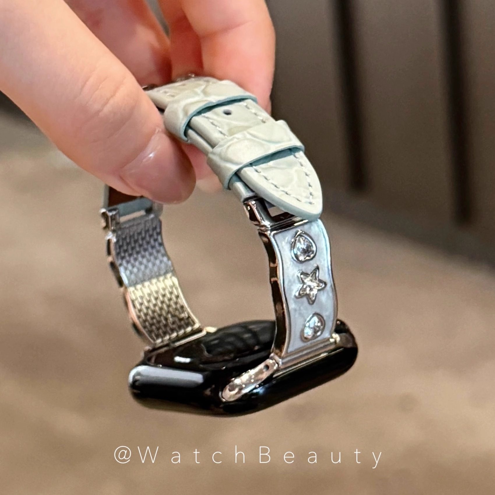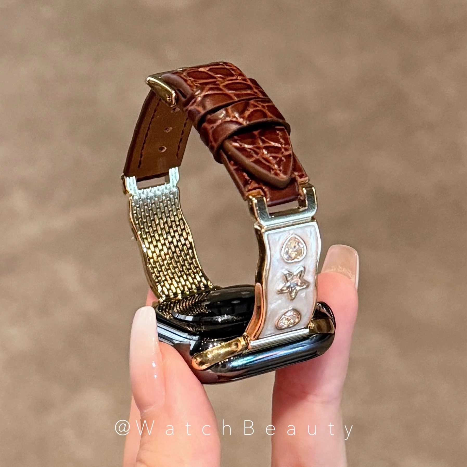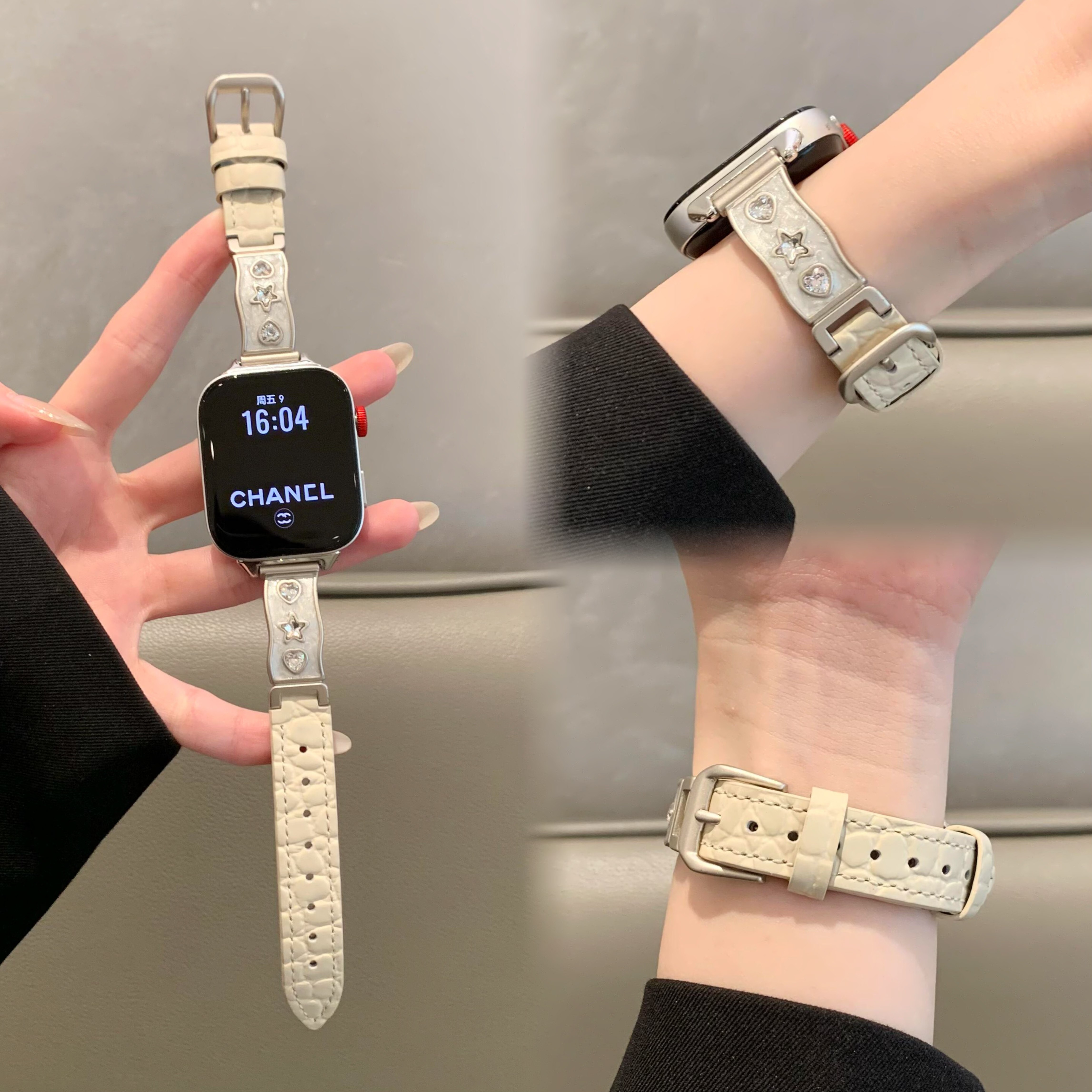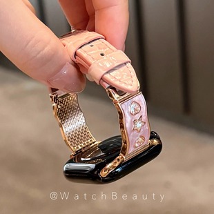心星金属鳄鱼纹皮质华为fit43手表带苹果适用小米89pro红米watch5