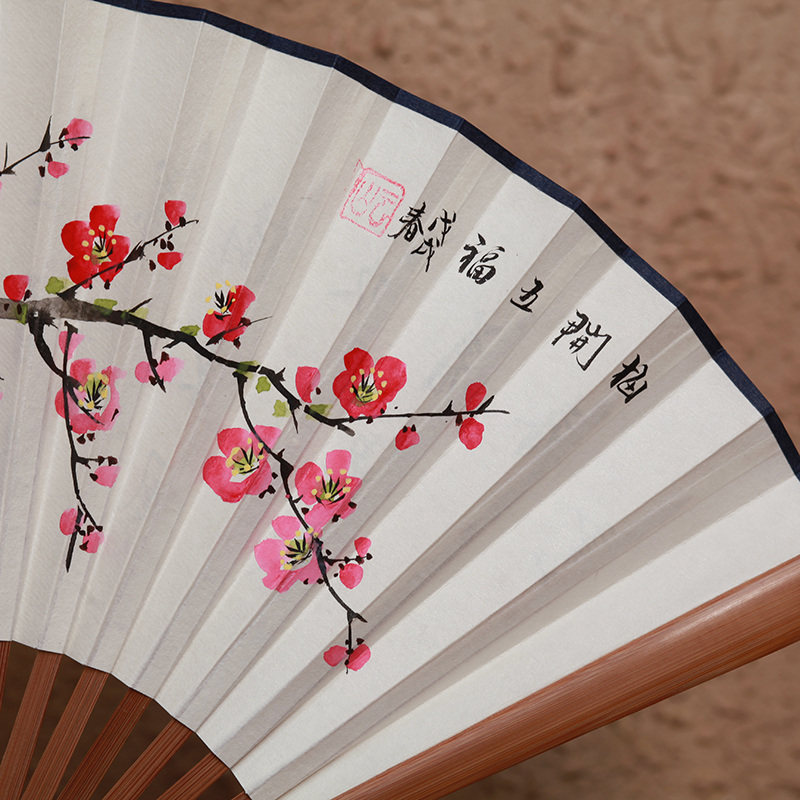 中国风白纸扇日用扇工艺礼品 8寸手绘桃花扇 新款 男女扇子折扇男式