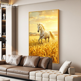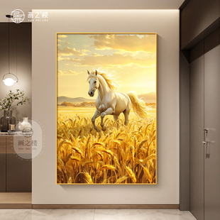 策马奔腾玄关装 饰画办公室红色骏马图壁画轻奢感走廊过道尽头挂画