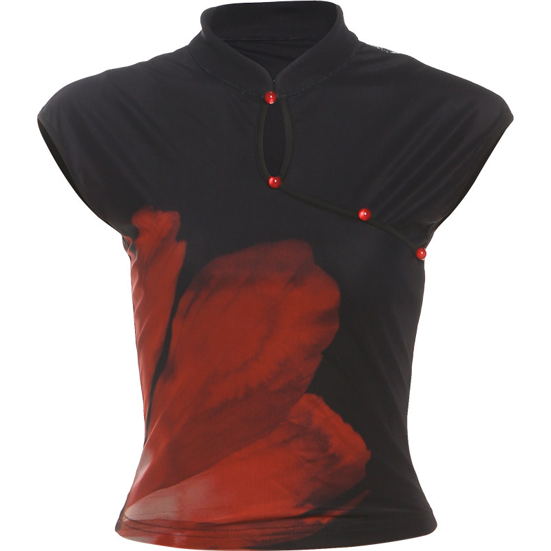 镂空印花短袖 复古改良版 T恤显瘦高腰半身裙两件套女 新中式 KLIOU