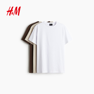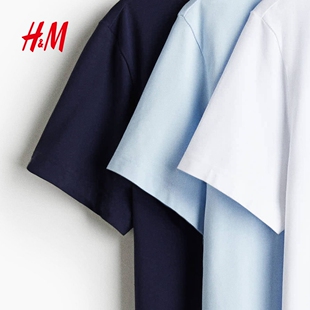 女装 圆领合身短袖 T恤3件装 基础款 简约情侣上衣0578630 春季 HM男装