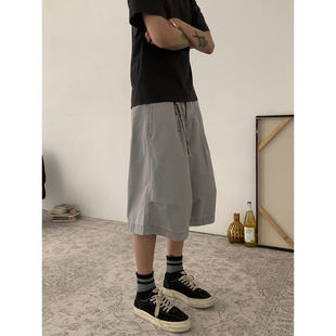 男宽松休闲直筒五分裤 复古水洗做旧简约廓形短裤 美式 INKNOTS夏季