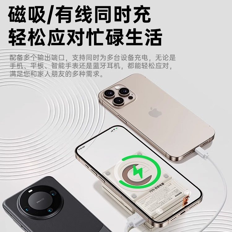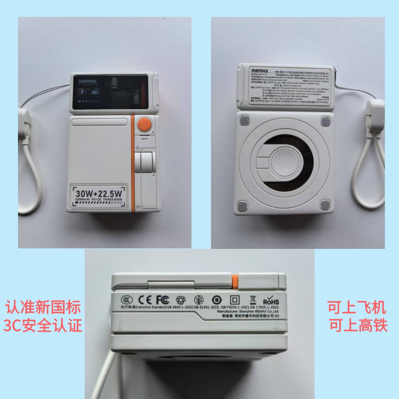 科技款 REMAX睿迈时尚 充电宝2万毫安大容量自带插头和线无线磁吸手机30W快充分量轻可上飞机 新国标3C认证