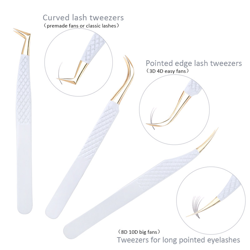 Anti Static Tweezers 1Pc Eyelash gold For Extension White