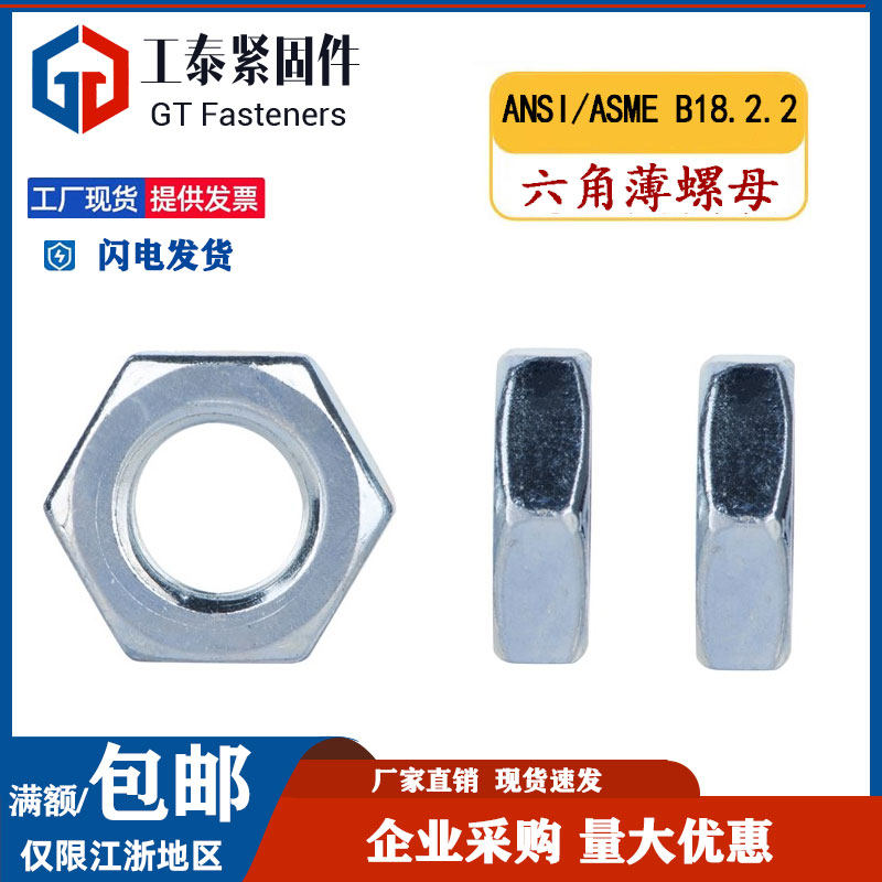 现货304不锈钢GB808薄型小对边锁紧六角螺母M8 1国标细牙扁螺帽