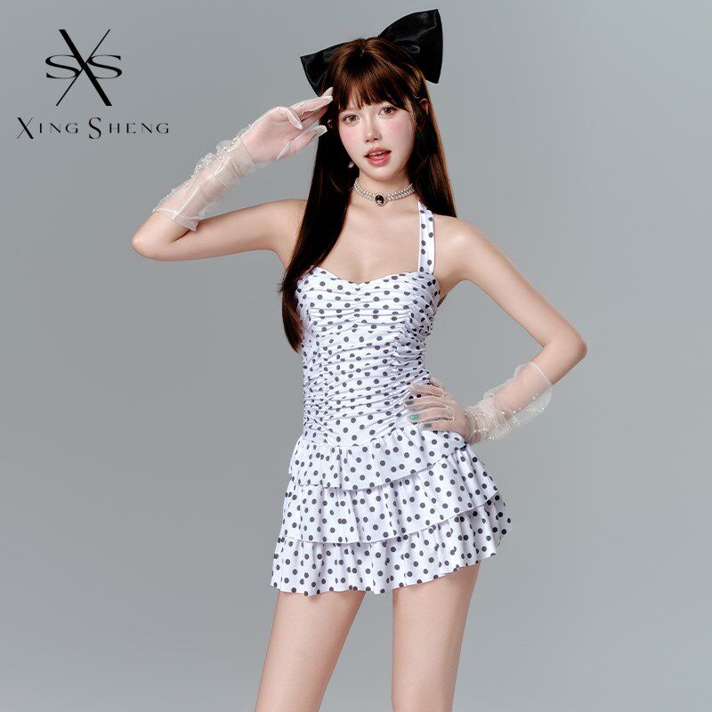 波点泳衣2024年新款 微胖女孩遮肉显瘦连体保守高级感钢托聚拢 爆款